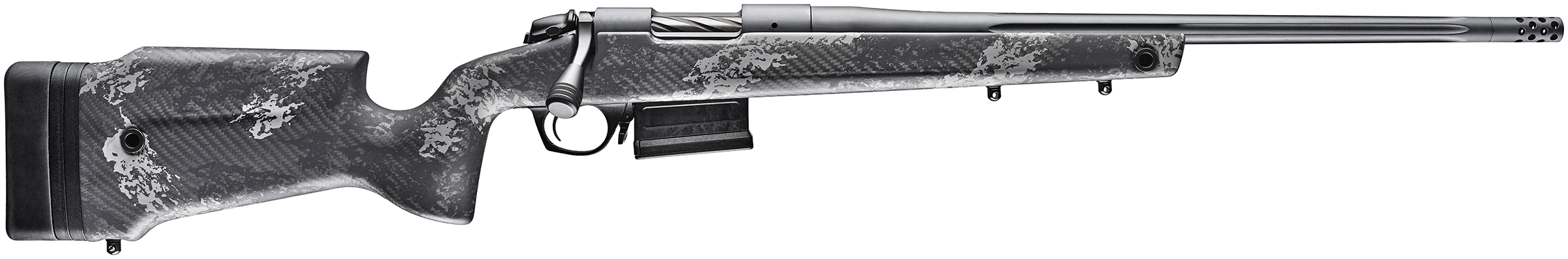 Bergara Rifles B14S754CF B-14 Crest 22-250 Rem 5+1 20″ Sniper Gray Cerakote Fluted Barrel, Steel Receiver, Fixed Carbon Fiber Black & Gray Sponge Stock