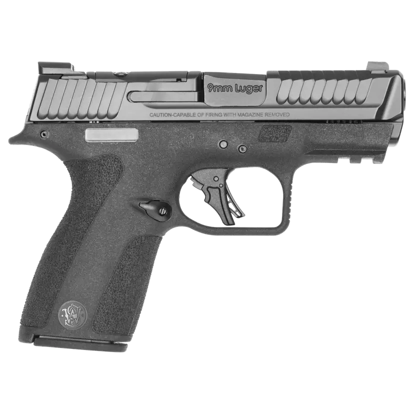SMITH & WESSON PC M&P 9 SHIELD X CARRY COMP 9MM 3.6IN BARREL 15RD BLACK NO THUMB SAFETY FLUTED PORTED BARREL OPTIC READY NIGHT FRONT SIGHT 14269